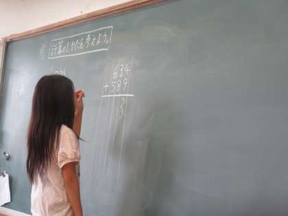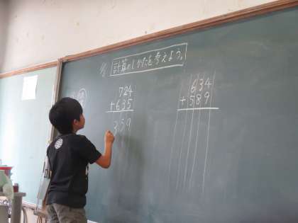 たし算は、2年生の時の繰り上がりの処理の仕方がきちんと定着していれば、3年生の3ケタになっても難なくクリアできています。積み上げの大切さを実感する瞬間です。
