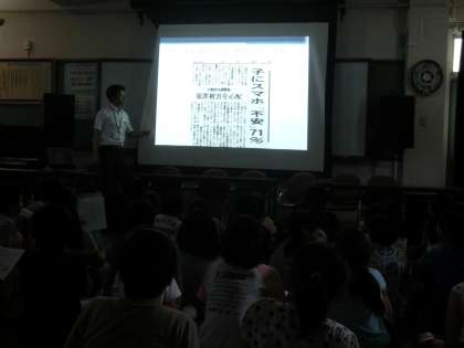 月曜日の5時間目に,学年で,情報モラルの授業を行いました。プレゼンテーションソフトで,ケータイ・スマホの利便性と危険性を示しながら,子どもたちから意見を出させ,授業を進めていきました。