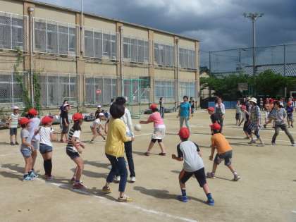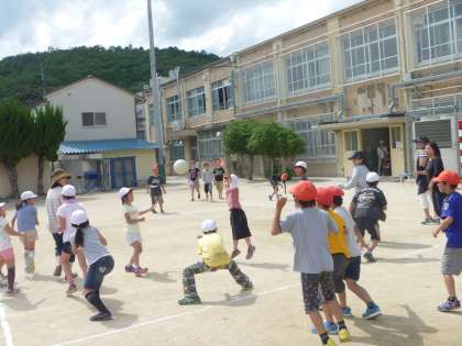 子どもたちはドッジボールが大好きで,普段からよくグランドに出てドッジボールをして遊んでいますが,今日は保護者の方も混ざっての試合で,とても楽しかったようです。