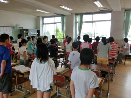 5年生の音楽は,井馬先生が指導してくださっています。授業の内容は日々かわっていきますが,継続して毎回取り組んでいることもあります。リコーダーでは,「こきょうの人々」を演奏し,歌は,「ビリーブ」を歌っています。