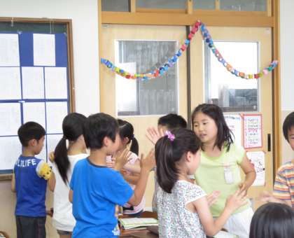 歌を覚えたあとで、リズムに合わせて手合わせをして遊びました。