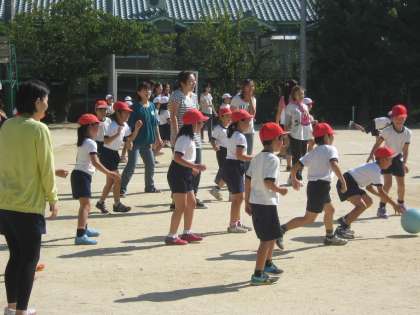 クラス対抗のしっぽ取りをしたあと、ドッジボールをしました。