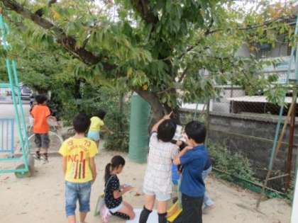 子どもたちは,グループで協力して,学校の周りを探し回り,図鑑で調べました。