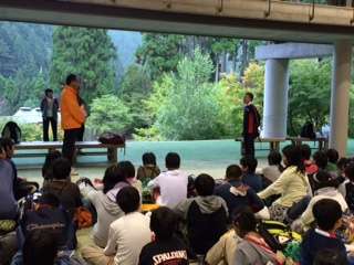 1泊2日の翠峰荘での活動も無事に終えました。お世話になった方々にお礼を言い,バスで花背山の家に帰ります。