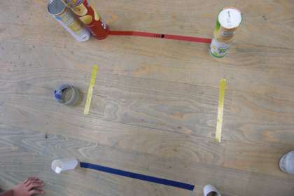 今日の生活科の学習は,身の回りの材料を使って,転がしたり積んだりすることの競争をしました。ペットボトルボーリング,芯を転がすゲーム,カップを高く積む競争をしました。(各クラスによって遊び方は色々です。)