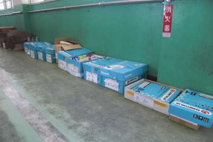 活動するときに使いやすいよう,種類ごとに分けて廊下に並べています。