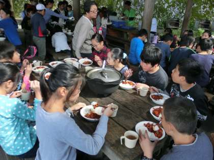 まずは,着いた日の「野外炊事」です。「先生,うちの班のカレー,むっちゃおいしいで。食べてみてください!」と,うれしそうに誘ってくれる子どもたちの顔が忘れられません。