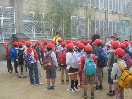 諸注意を聞いて,いざ,植物園へ出発です。