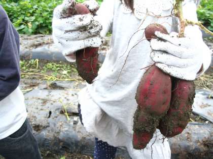 左京区静原にある「七彩の風いも畑」でいも掘り体験をしました。心配していた天気も,うす曇りでしたが時折日も差し,気持ちよく1日過ごすことができました。