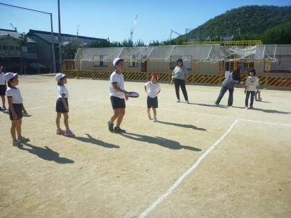 体育でドッジビーをしました。ドッジボールのボールの代わりにフリスビーを使いました。やわらかいフリスビーなのであたっても痛くないです。積極的にフリスビーをとったり投げたりしていました。まっすぐ飛ばなかったり,思い通りに飛ばなかったりするのもドッジビーの楽しさでみんな張りきって取り組んでいました。