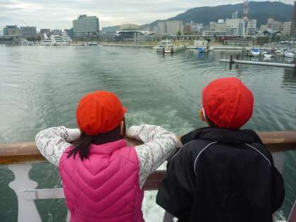秋の遠足で浜大津に出かけました。琵琶湖でミシガンクルーズを楽しみました。ミシガンを見た子どもから「大きいね。」「船に乗るのが楽しみ」という声がありわくわくしていました。船が出発するためにスクリューが回りはじめると「お〜!」という歓声があがりました。