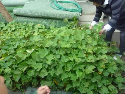 春から育てていたにじの子ガーデンのサツマイモを掘りました。土からサツマイモが見えるとみんな思わず歓声をあげていました。大きいものや小さいものなどいろいろな大きさのサツマイモを収穫することができました。どんなふうにサツマイモを調理したいかみんなで相談したいと思います。