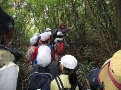 衣笠山では、子どもたちは、森林インストラクターから自然のことについてのくわしい説明を聞きました。