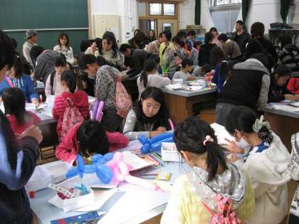 PTA主催の恒例行事である秋まつりは,午前9時15分に受付が始まり,大勢の子どもたちで講堂がにぎわいました。9時30分,オープニングセレモニーが「KINKAKU BAND」の演奏で開始された後,プラバンやしおり作り,ストラックアウト,スマートボール,ボーリングなどのゲームを楽しむ子どもたちの姿が見られました。PTAの皆様,本当に御苦労様でした。