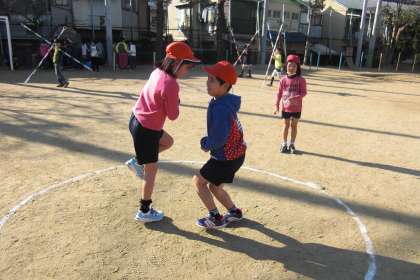 体育の学習の「すもう」でけんけんずもうをしました。