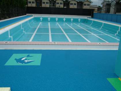 真新しいブルーのプールが姿を見せてくれています。