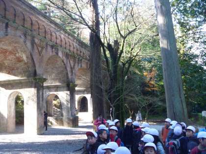京都に住む子どもたちのイメージでは,川は北から南に流れているのに,この水路閣では南から北に流れているので不思議がっていました。