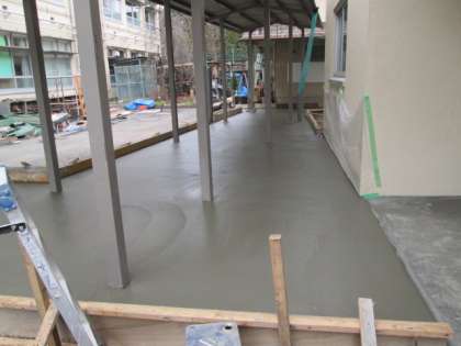 今,工事をしていただいている,北校舎と南校舎の間の東側渡り廊下の写真です。以前より高くしていただいて,校舎と校舎の間がまったく段差のない状態に仕上げていただいています。バリアフリーで通りやすい渡り廊下になりそうです。
