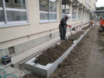北校舎の南側に,校舎に沿って花壇を新しく作ってくださっています。今まで,金閣校には花壇として使える場所が少なかったのですが,4月からは中庭にもいろんな植物を植えることができそうです。