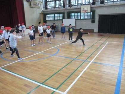 3クラス合同でのドッヂビーに子どもたちは楽しそうに取り組んでいました。