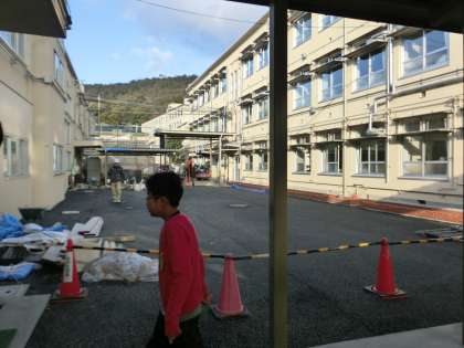 休み明け,工事の関係で,北校舎に入る昇降口が,西側から東側に変えます。また,職員室を元の場所に戻しています。