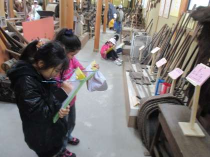 資料館の中に展示されている道具を見て,