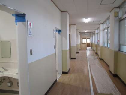 冬休みから始めていただいた東校舎の工事も,かなり進んできました。教室や廊下もほぼ完成してきています。東側の新しい昇降口も,靴箱を設置していただいています。トイレもとってもきれいです。