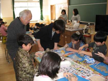 「金閣おやじ&おかあさんの会」の皆様の主催による陶芸教室を実施しました。60名を超える参加申込者が理科室と1年生教室を会場にして制作に励みました。学生などのボランティアの方々にもお手伝いいただき,子どもたちは自分の思いを粘土にこめて作品を仕上げることができました。スタッフの皆様,本日はお世話になり,ありがとうございました。