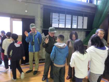 森林インストラクターの皆様と,お別れの握手をする子どもたちの様子。