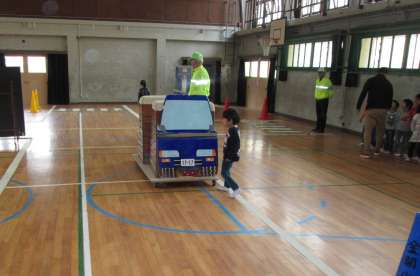 まず,道路の安全な通行の仕方を教わった後,講堂内に実際に作られたコースを歩きました。