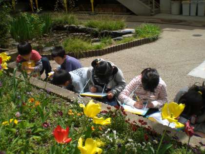 「しぜんのかんさつをしよう」の学習では,身の回りの生き物みつけに出かけました。