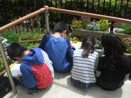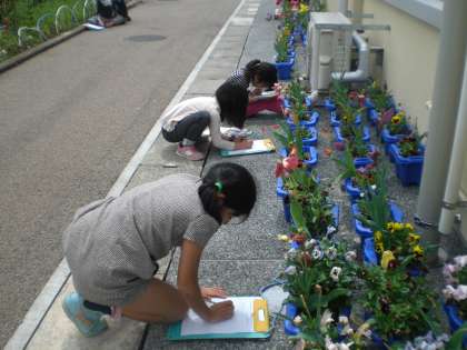 初めて習った虫眼鏡を使いながら,細かなところまで観察しました。