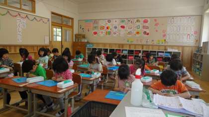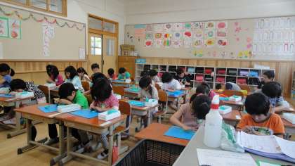 図画工作の時間に「ひもひもねんど」に取り組みました。ひものように細長くしたねんどを組み合わせて,みんなが個性的な作品をつくりました。