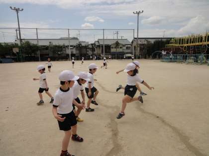体育科の授業では新しい単元,「とびくらべ」に入りました。今日は,水で描いた線と線の間を工夫して飛び越えるという学習をしました。子どもたちは,難しい幅にもどんどん挑戦していました。