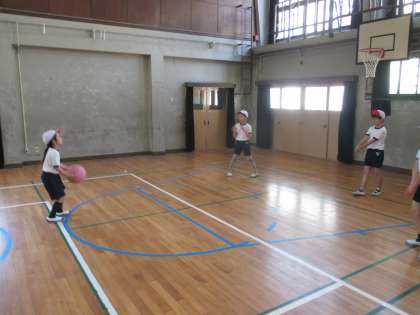そのあとで,チームに分かれてボールを使って練習をしました。