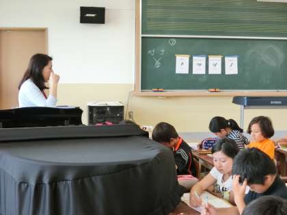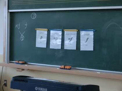 今日の音楽も,美しい歌声を響かせていた子どもたち。学習の中で,強弱記号について指導がありました。ピアノ,メゾピアノ,フォルテ,メゾフォルテ・・・などなど。歌唱をするときは,強弱記号を読み取り,歌に抑揚をつけて表現することが大切です。子どもたちの歌唱力が更にパワーアップすることでしょう。