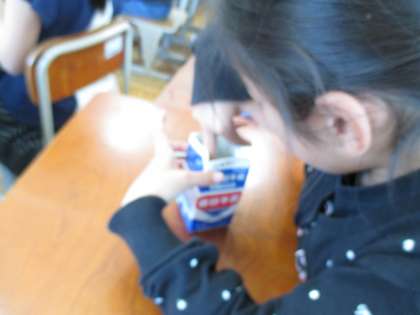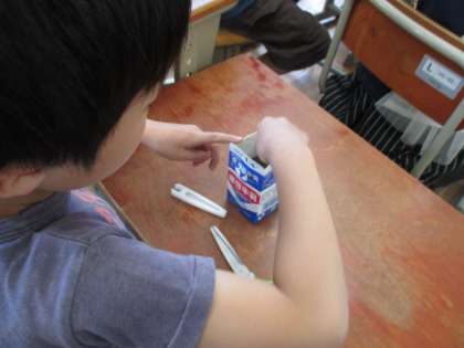 理科の学習でツルレイシの種を牛乳パックに植えました。