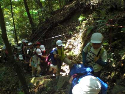 急な斜面も友だち同士声を掛け合ってがんばって登りました。