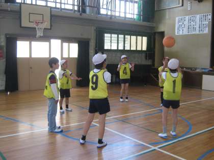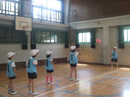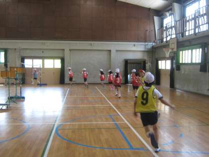 4つのチームに分かれ,それぞれのチームで準備運動と体ならしをします。