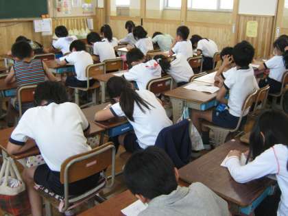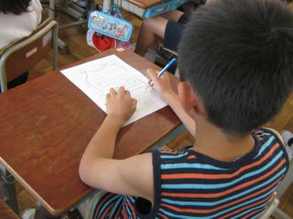 書き上げた後は各自紙を見返し,自分のいいところを確認しました。