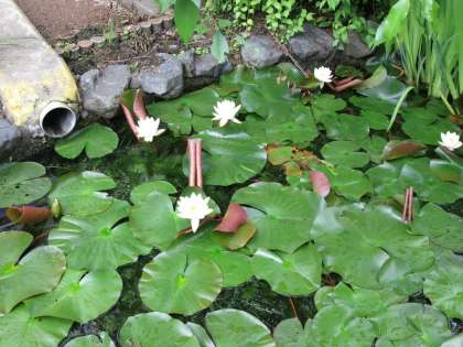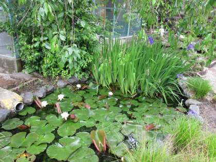 紫色のカキツバタも白色のスイレンも大変美しく咲いており,春とはまた違った様子を見せています。