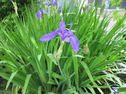 春,桜がきれいに咲いていた校内の池は,今,きれいなカキツバタとスイレンの花が咲いています。