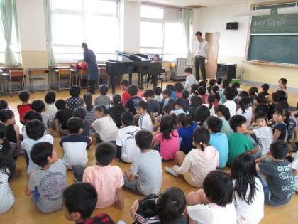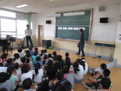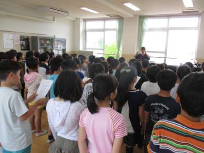4年生全員で並び方やセリフ,歌の練習をしました。
