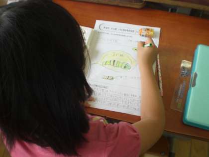 理科の学習で,アゲハの幼虫を観察しました。