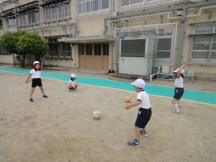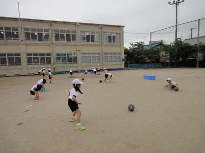 体育科の単元,「ころがしドッジボール」に入りました。今日はまず,ころがしドッジボールをするために,ボールを上手に転がす練習をしました。相手がキャッチしやすいよう,ころがすにはどうすればよいか考えながら学習に取り組めました。「ナイスキャッチ」などという声も子どもたちから聞こえてきました。