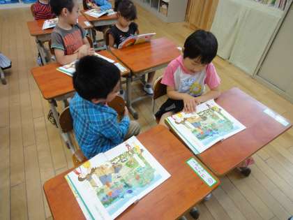 国語科の学習では,教科書の絵を見ながら質問したり,答えたりするという学習をしました。話すときに,ていねいな言葉遣いで話すということを意識して取り組みました。ペアで何度も質問しあって練習をし,みんなの前でも発表することができました。