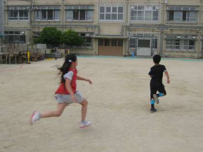 今回は1グランドで「たかおに」と「ドッジボール」と「だるまさんがころんだ」をしました。