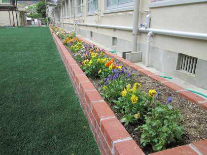 中庭の花壇には,栽培委員会の子どもたちが中心となって世話をしてくれている色とりどりの花が美しく咲いています。