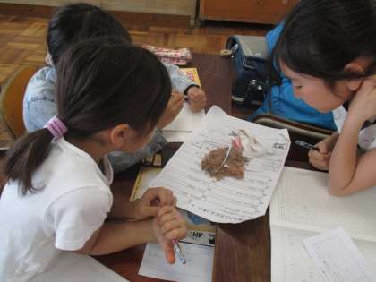 学校にはどのようなごみが捨てられているかをグループごとに調べ,子どもたちは想像以上のごみの種類に驚いていました。