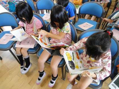 5月29日(金)に,初めて図書室に入り,図書室での約束について学習しました。子どもたちは待ちに待った図書室の使用に大喜びで,真剣に話を聞くことができました。約束を学習した後には,自分が気にいった本を手に取り,それぞれ本の世界に入りこんでいました。
